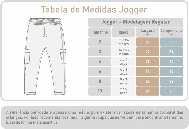 | Modelo | Ribana na cintura com elástico, cadarço decorativo, bolsos cargo laterais, barras dos tornozelos dobráveis. |