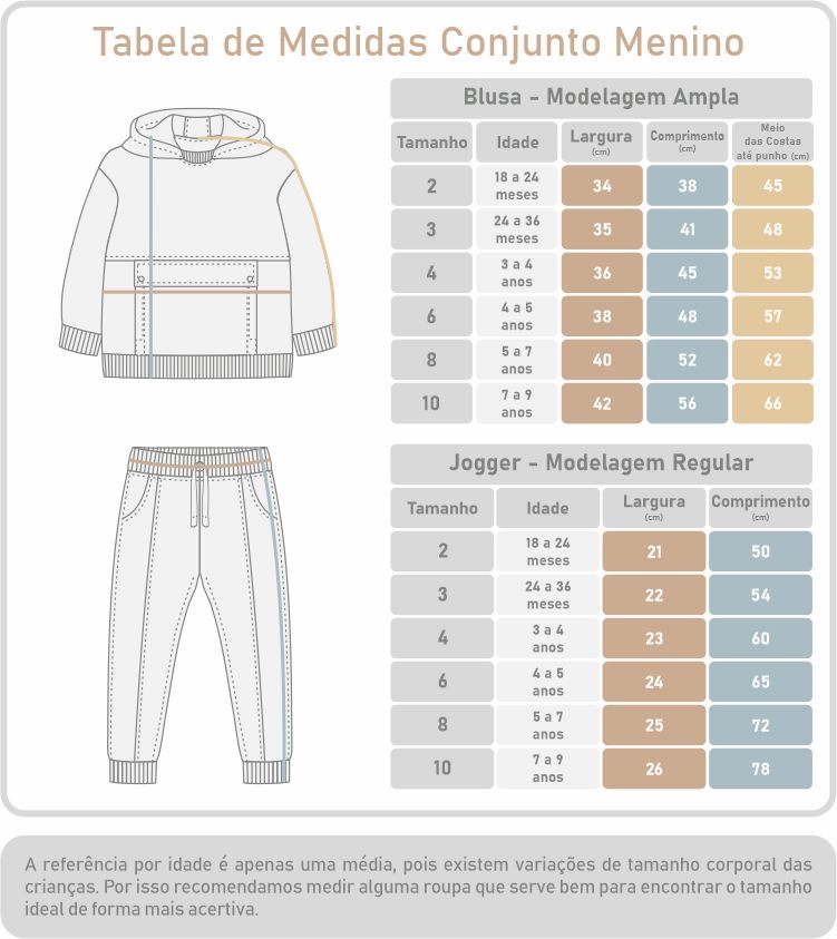 Já a calça com bolsos faca, ribana com elástico na cintura oferece um ajuste mega confortável e um cadarço que é puro estilo, é liberdade total pras brincadeiras. E essas ribanas nas pernas? Se adaptam direitinho ao crescimento da criança.