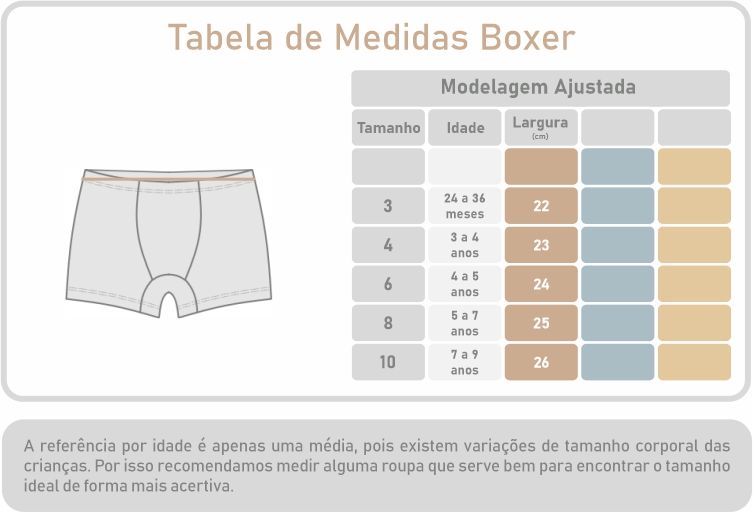 | Modelo | Cós com elástico estreito interno, pernas com bainha |